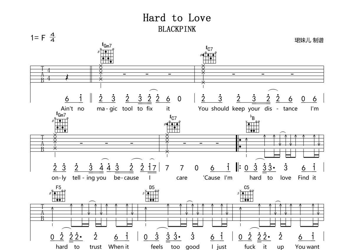 BLACKPINK《Hard to Love》吉他谱 - F调弹唱六线谱