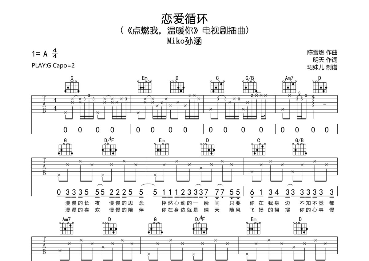 Miko孙涵《恋爱循环》吉他谱 - G调弹唱六线谱