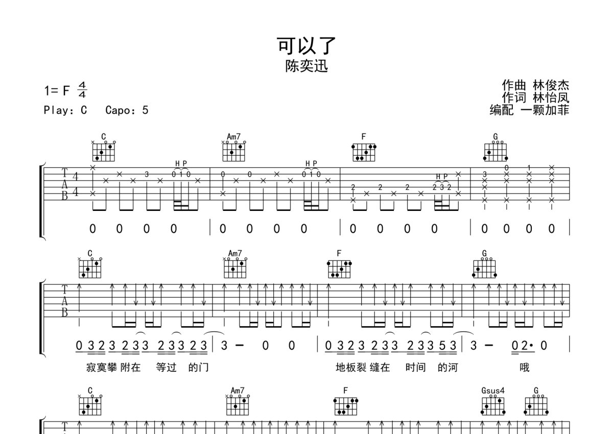 陈奕迅《可以了》吉他谱 - C调弹唱六线谱 - 完整编配版