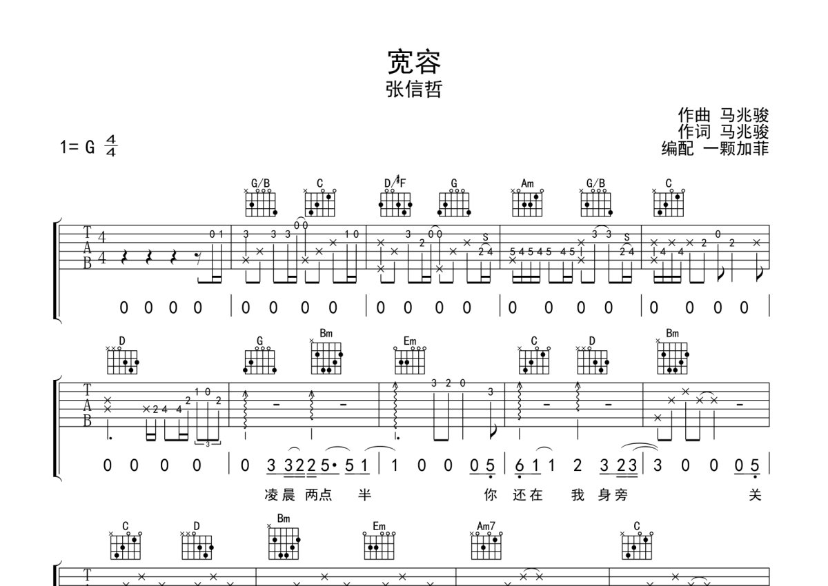 张信哲《宽容》吉他谱 - G调弹唱六线谱 - 完整编配版