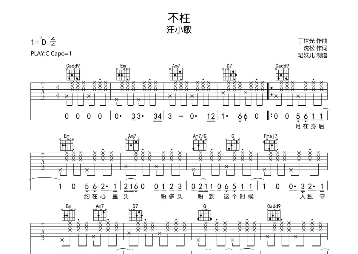 汪小敏《不枉》吉他谱 - C调弹唱六线谱
