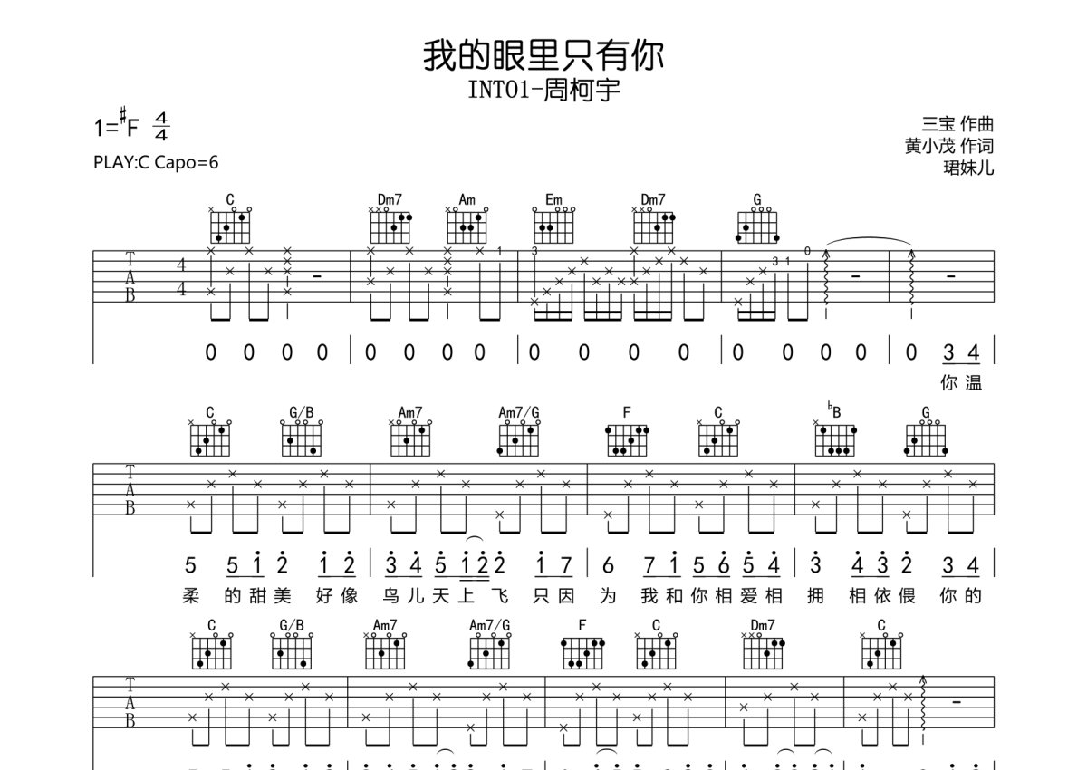 INTO1-周柯宇《我的眼里只有你》吉他谱 - C调弹唱六线谱