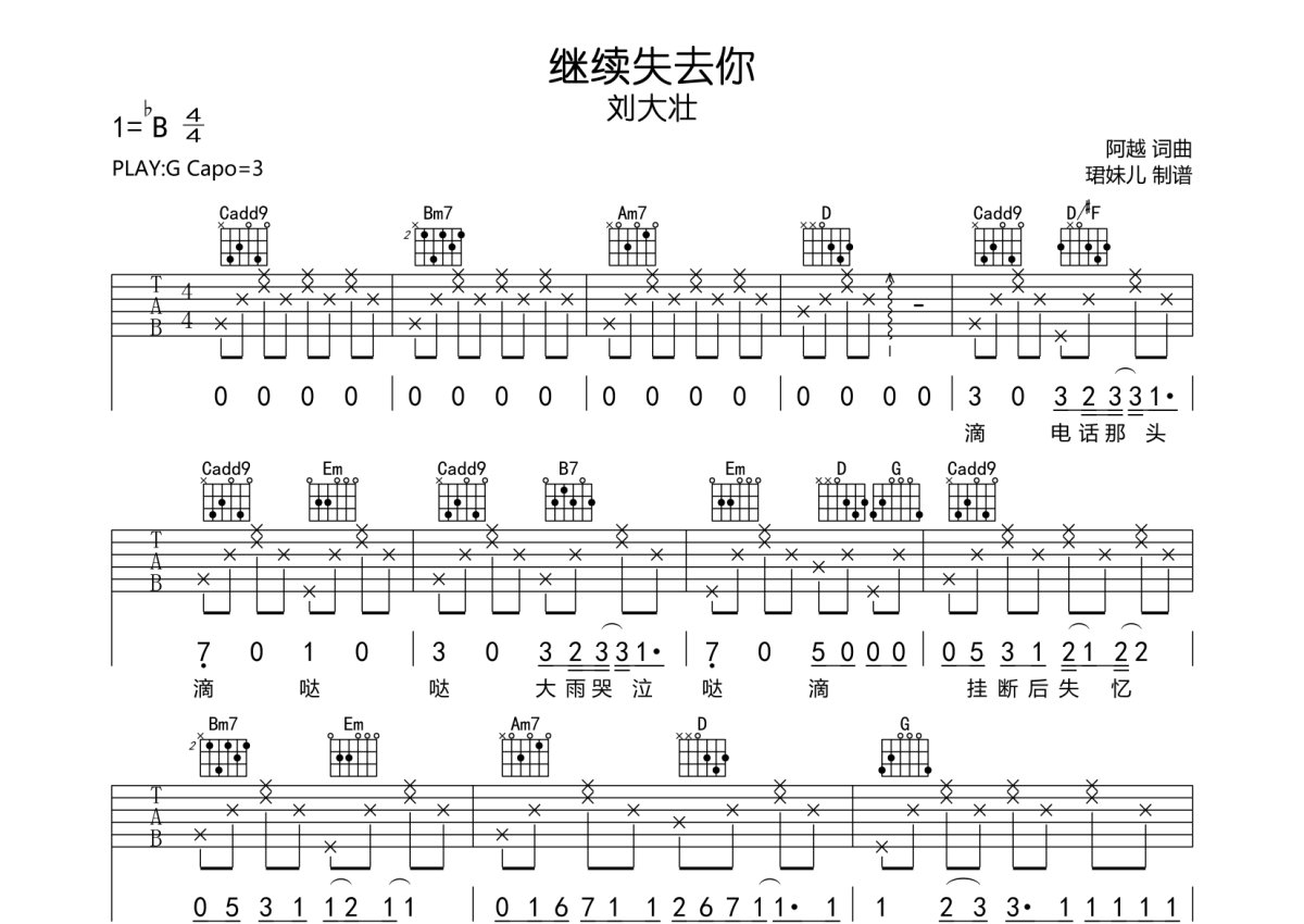刘大壮《继续失去你》吉他谱 - G调弹唱六线谱