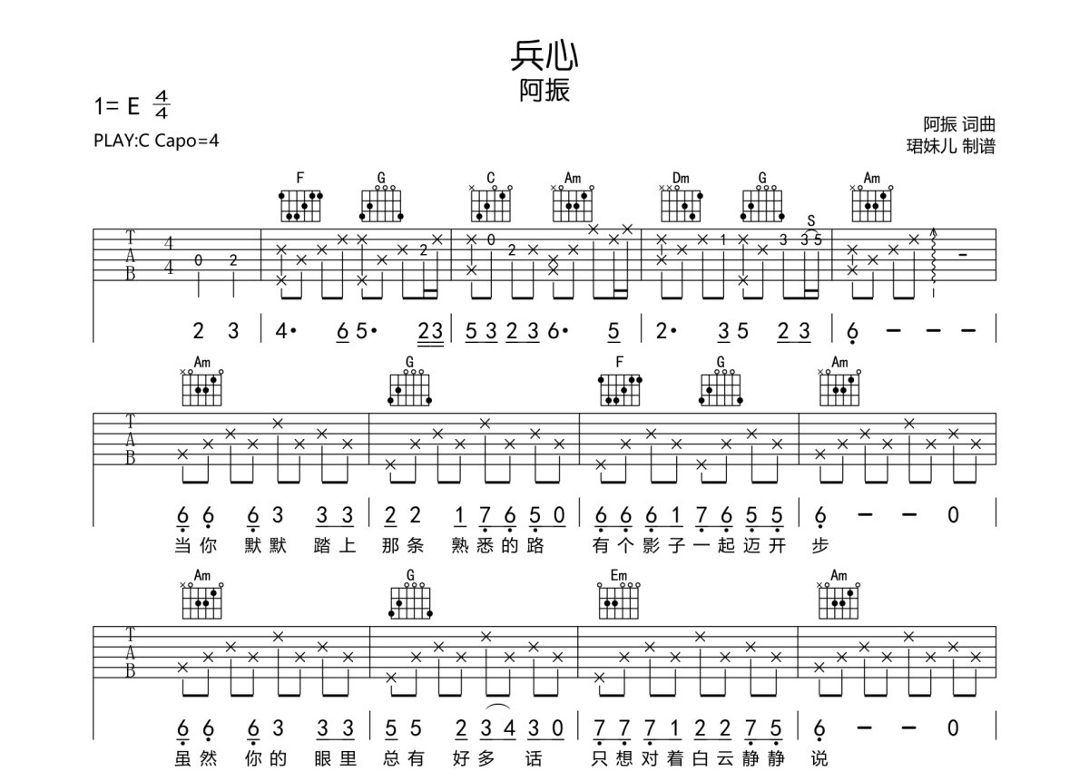 阿振《兵心》吉他谱 - C调弹唱六线谱