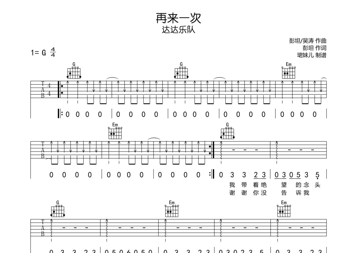 达达乐队《再来一次》吉他谱 - G调弹唱六线谱