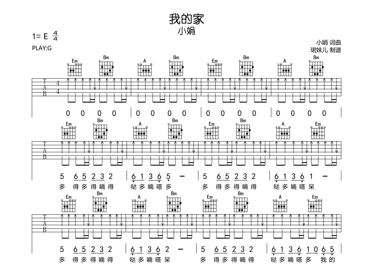 小娟《我的家》吉他谱 - G调弹唱六线谱