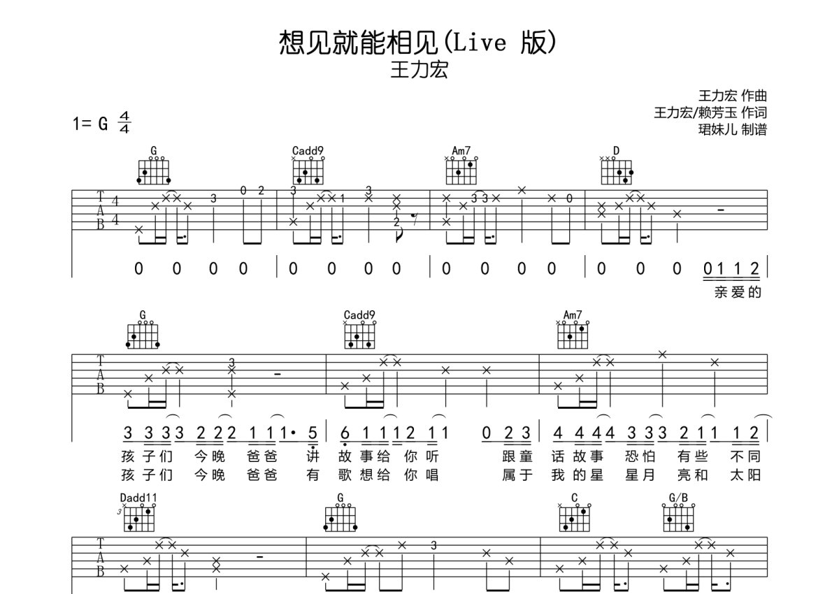 王力宏《想见就能相见》吉他谱 - G调弹唱六线谱