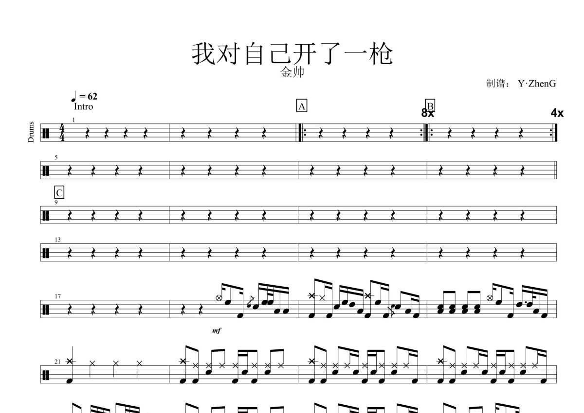 金帅《我对自己开了一枪》鼓谱 - 架子鼓谱