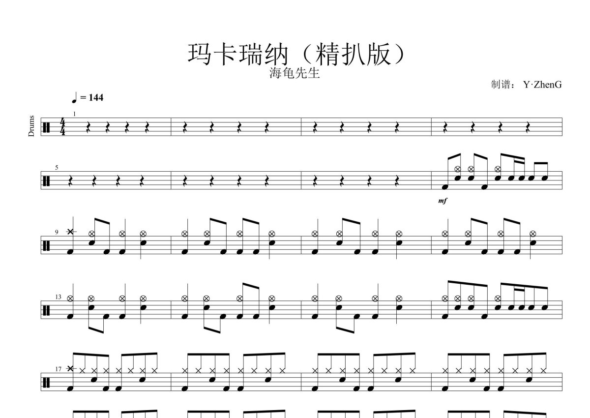 海龟先生《马卡瑞纳》鼓谱 - 架子鼓谱