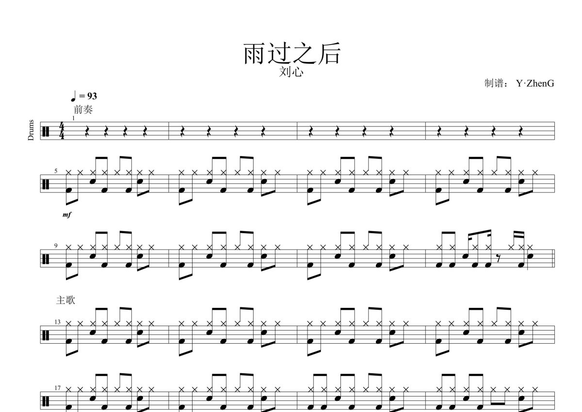 刘心《雨过之后》鼓谱 - 架子鼓谱