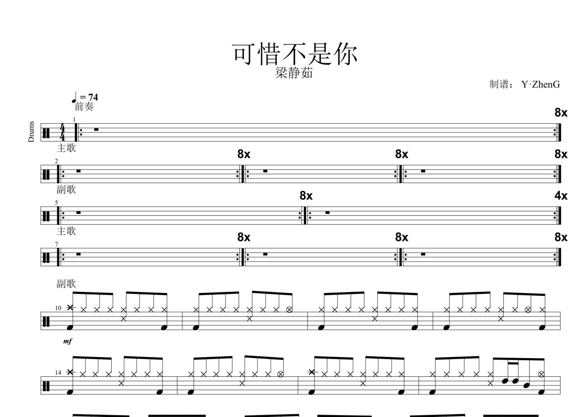 梁静茹《可惜不是你》鼓谱 - 架子鼓谱