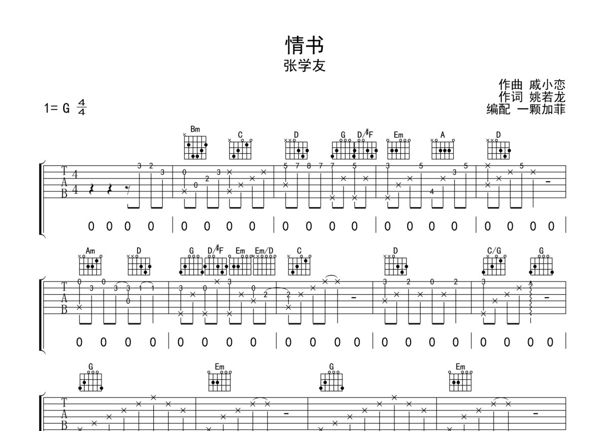 张学友《情书》吉他谱 - G调弹唱六线谱 - 完整编配版