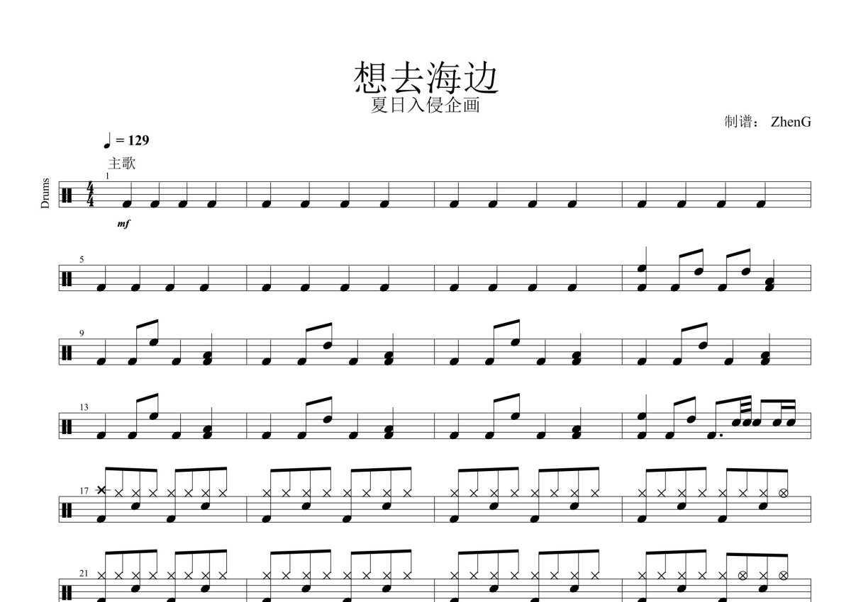 夏日入侵企画《想去海边》鼓谱 - 架子鼓谱