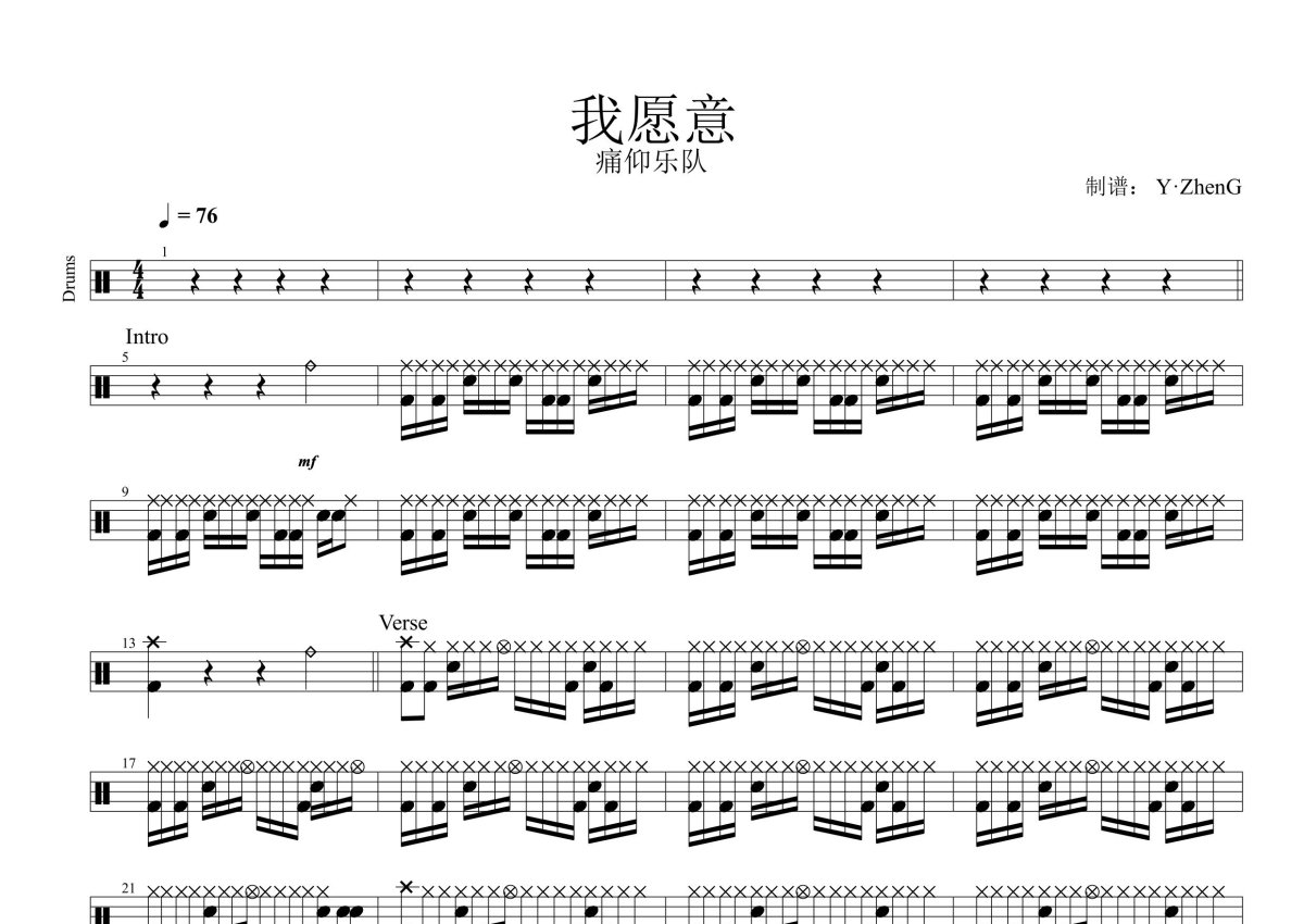 痛仰乐队《我愿意》鼓谱 - 架子鼓谱