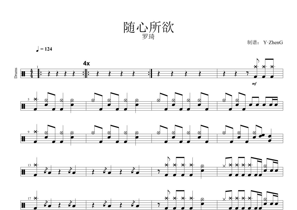 指南针《随心所欲》鼓谱 - 架子鼓谱