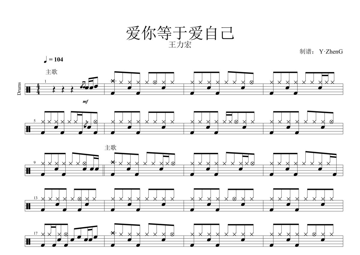 王力宏《爱你等于爱自己》鼓谱 - 架子鼓谱