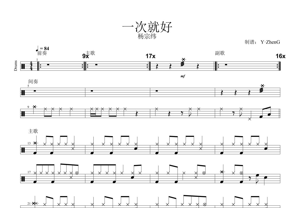 杨宗纬《一次就好》鼓谱 - 架子鼓谱