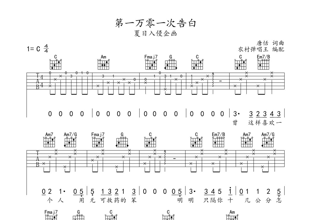 夏日入侵企画《第一万零一次告白》吉他谱 - C调弹唱六线谱