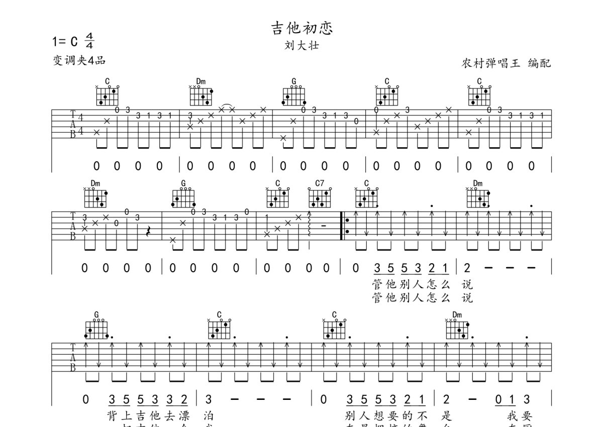 刘大壮《吉他初恋》吉他谱 - C调弹唱六线谱