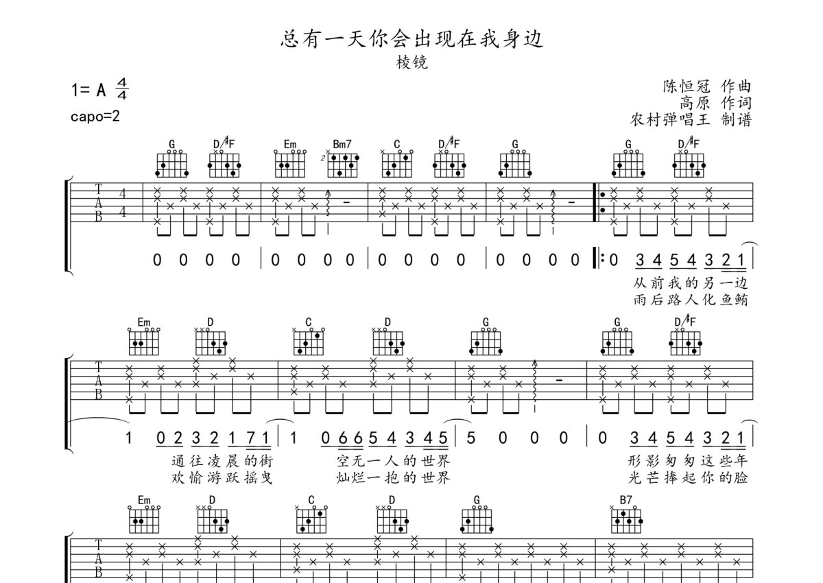 棱镜乐队《总有一天你会出现在我身边》吉他谱 - G调弹唱六线谱