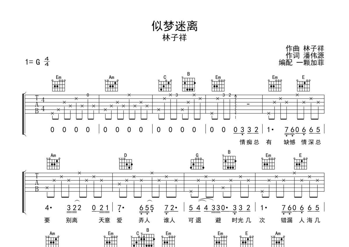 《似梦迷离》是林子祥演唱的一首歌曲,完整编配版,本吉他谱采用的是G调指法编配,这份吉他谱共有两张高清图谱,图谱由 @一颗加菲 编配上传,图谱使用六线谱编配,包含吉他和弦指法、简谱以及歌词部分,曲谱配备了相关的音频提供试听,使用这份似梦迷离吉他谱,可以让你更加方便地掌握这首歌曲的弹唱技巧,快来尝试吧。