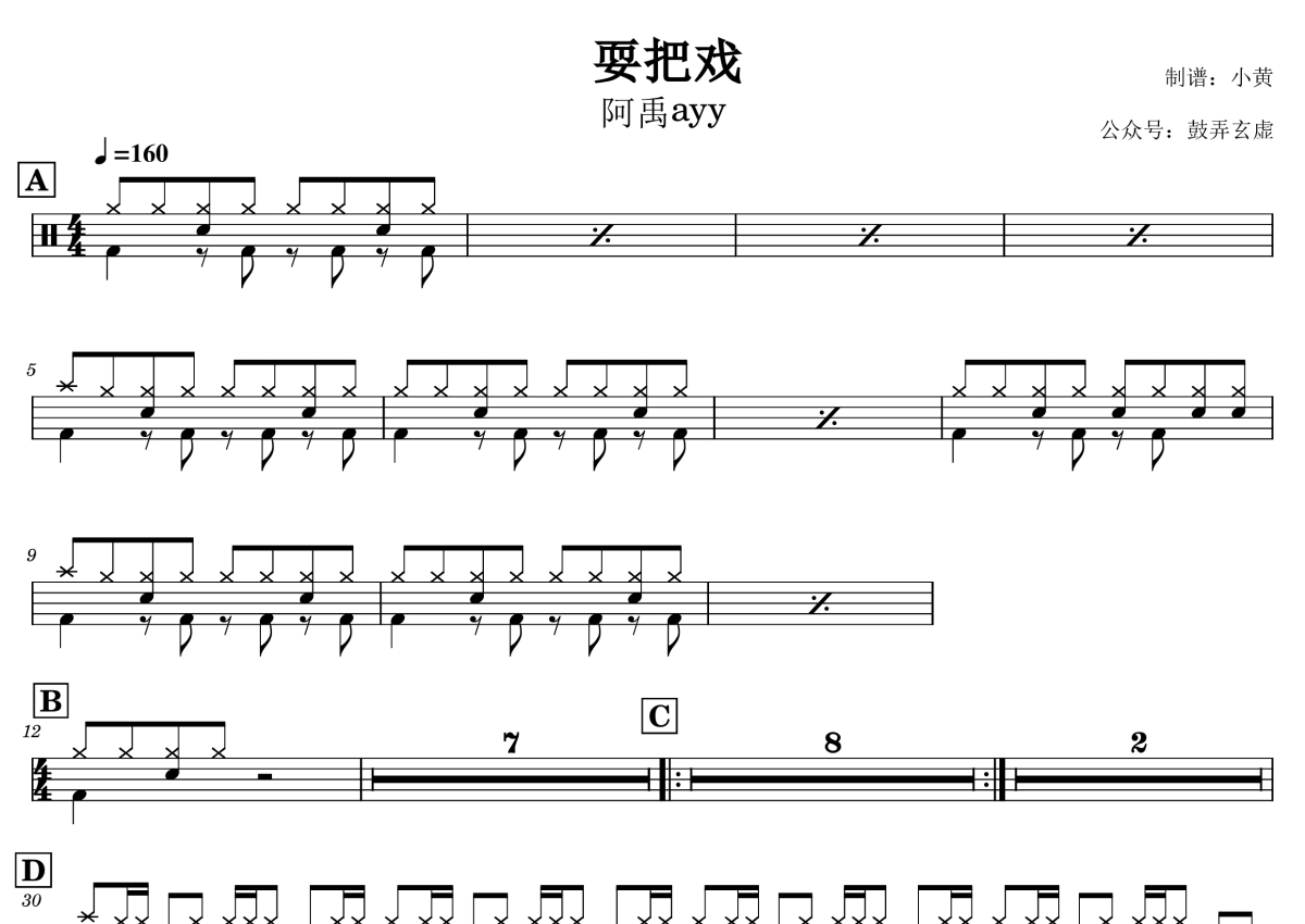 阿禹ayy《耍把戏》鼓谱 - 架子鼓谱