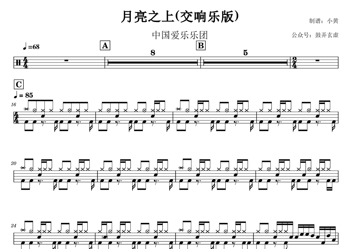中国爱乐乐团《月亮之上(交响乐版)》鼓谱 - 架子鼓谱