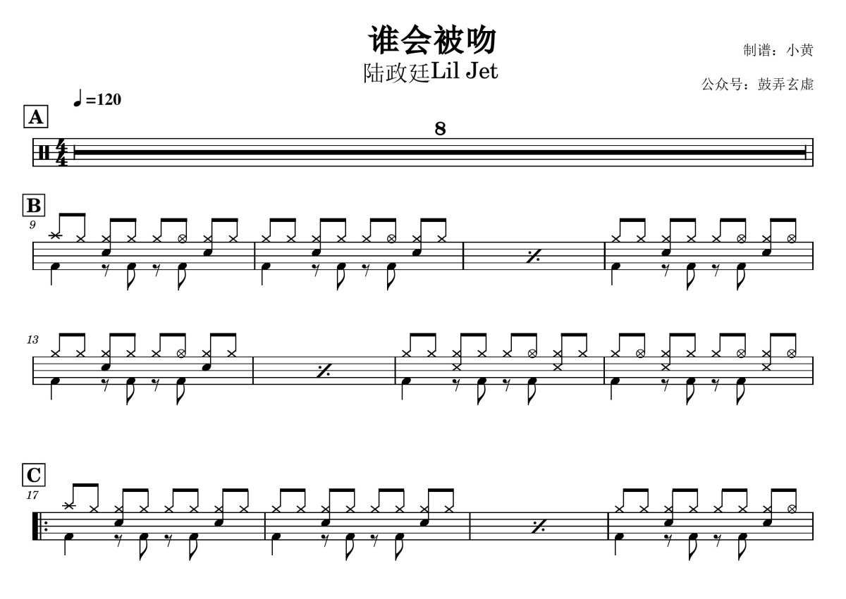 陆政廷Lil Jet《谁会被吻》鼓谱 - 架子鼓谱
