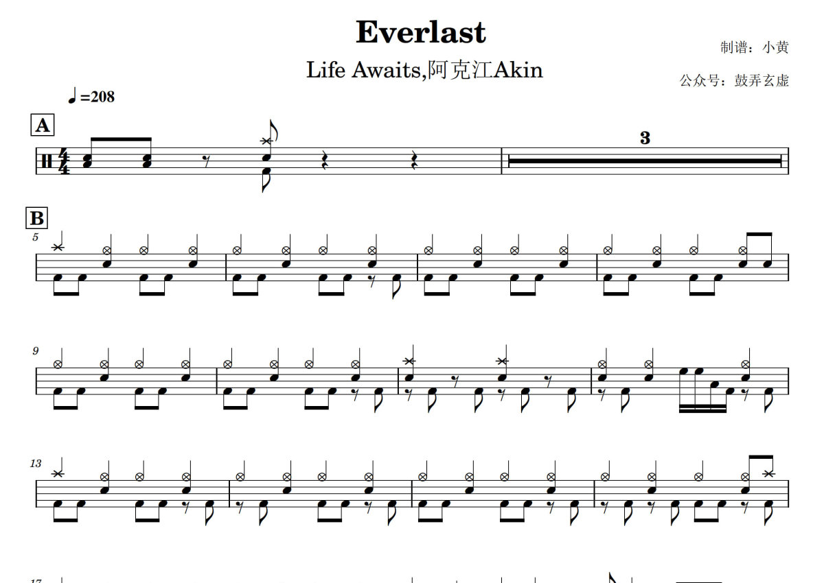 Life Awaits,阿克江Akin《Everlast》鼓谱 - 架子鼓谱