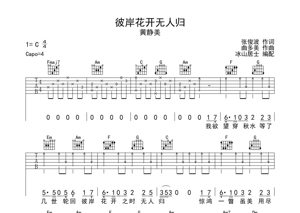 黄静美《彼岸花开无人归》吉他谱 - C调弹唱六线谱