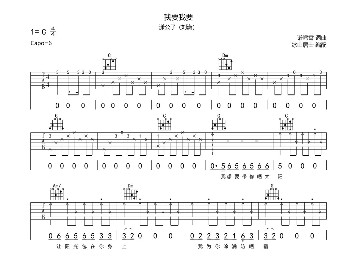 潇公子(刘潇)《我要我要》吉他谱 - C调弹唱六线谱