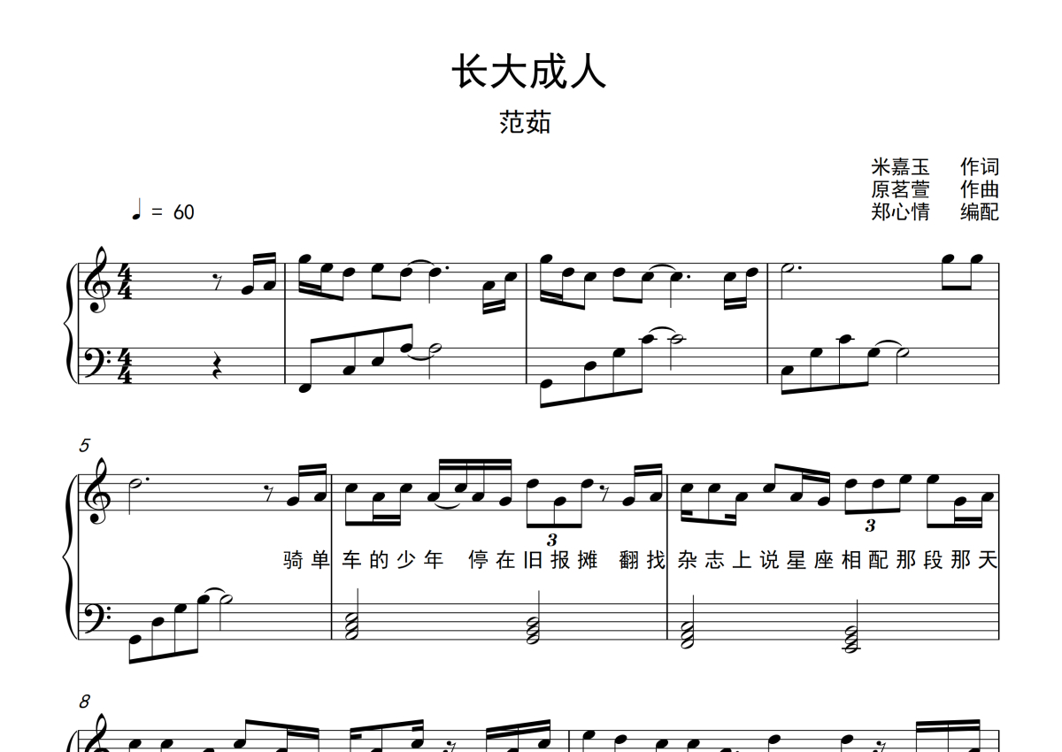 范茹《长大成人》钢琴谱