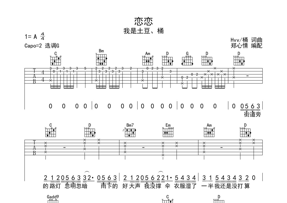 我是土豆、桶《恋恋》吉他谱 - G调弹唱六线谱