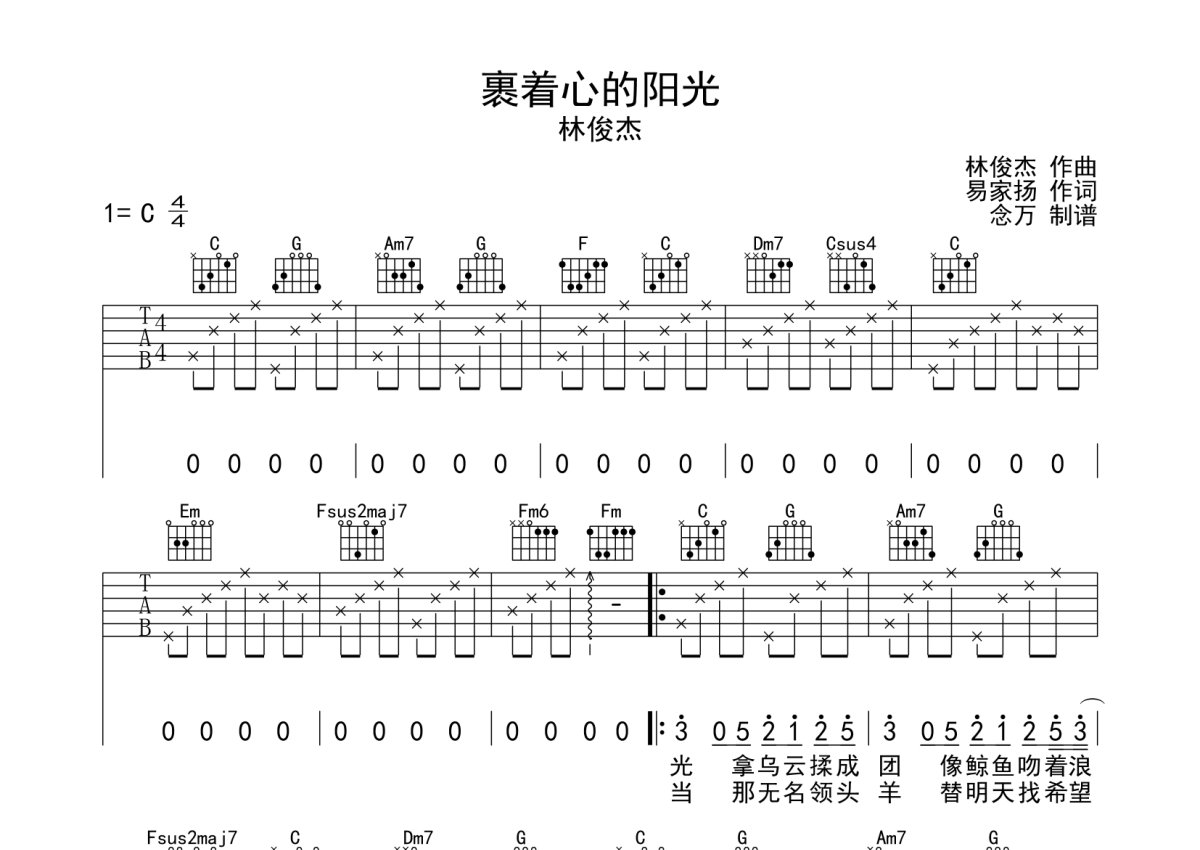 林俊杰《裹着心的光》吉他谱 - C调弹唱六线谱