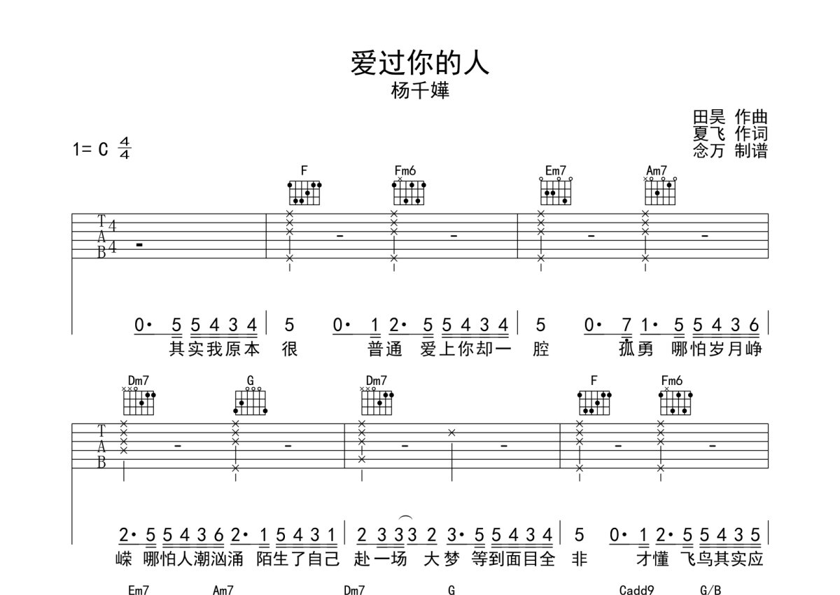 杨千嬅《爱过你的人》吉他谱 - C调弹唱六线谱