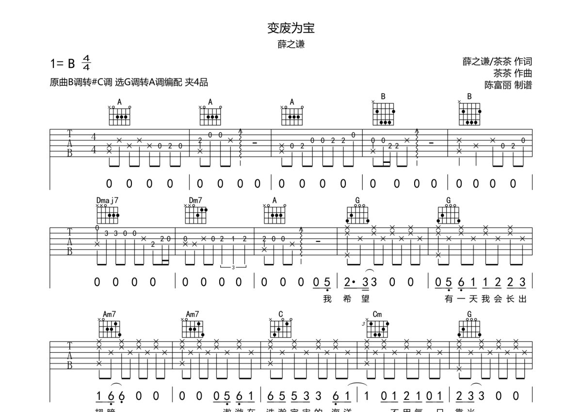 薛之谦《变废为宝》吉他谱 - G调弹唱六线谱