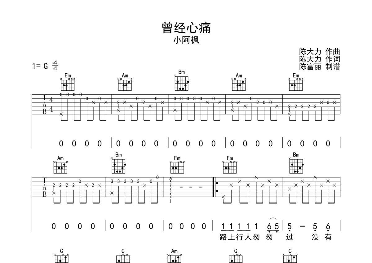 小阿枫《曾经心痛》吉他谱 - G调弹唱六线谱