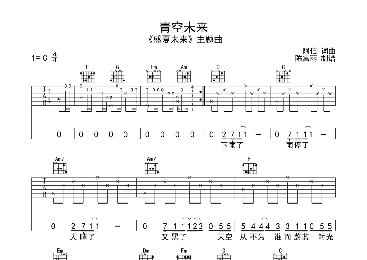 阿信《青空未来》吉他谱 - C调弹唱六线谱