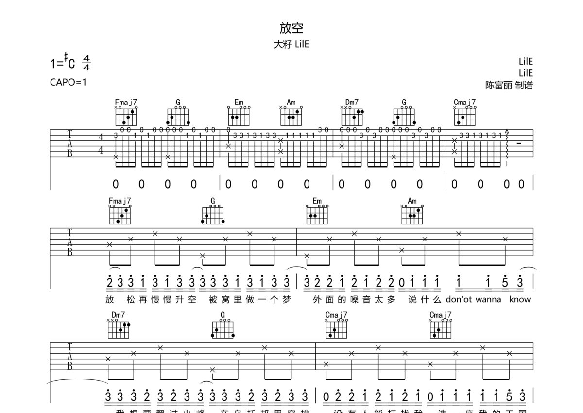 大籽/LilE《放空》吉他谱 - C调弹唱六线谱