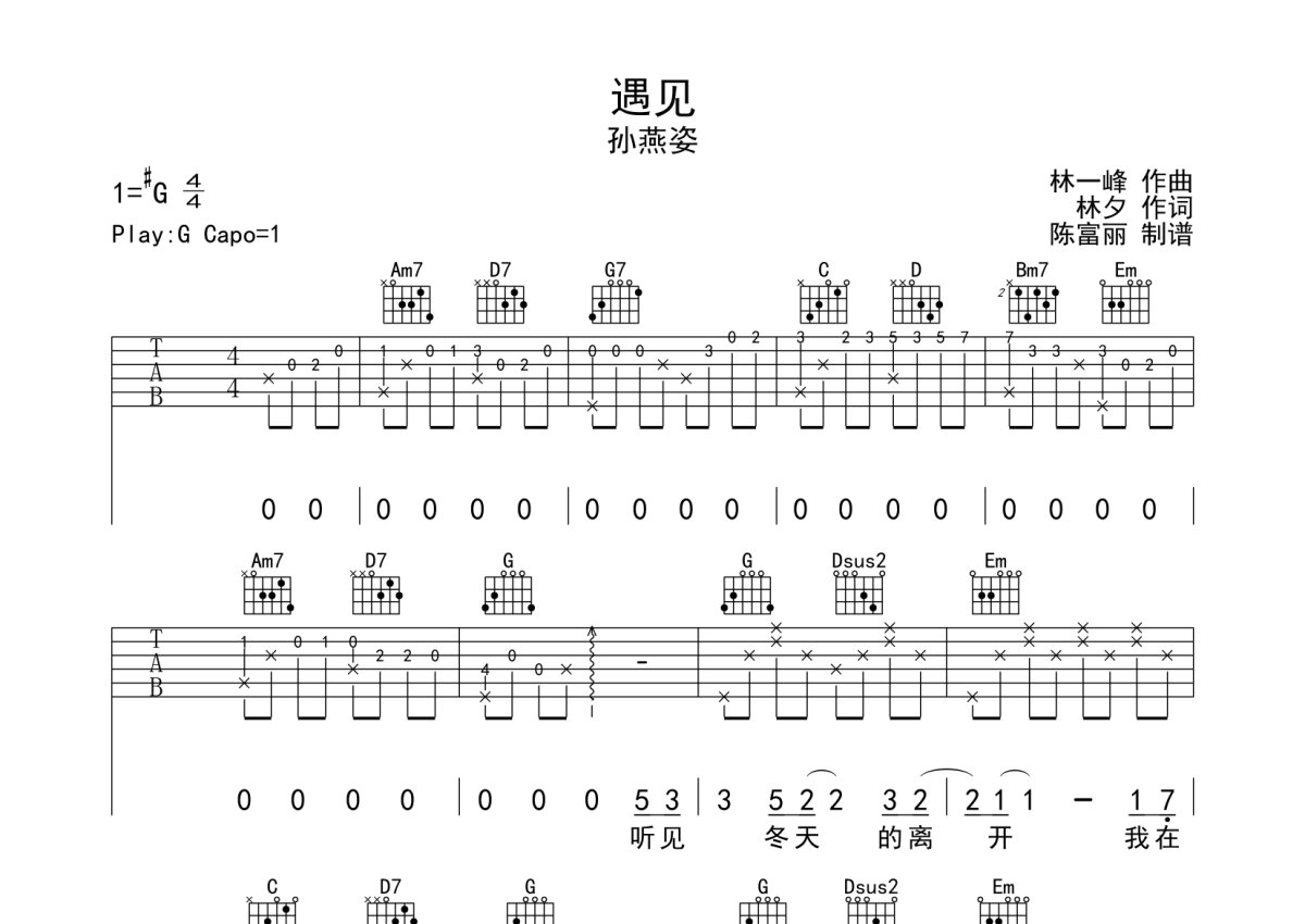 孙燕姿《遇见》吉他谱 - G调弹唱六线谱