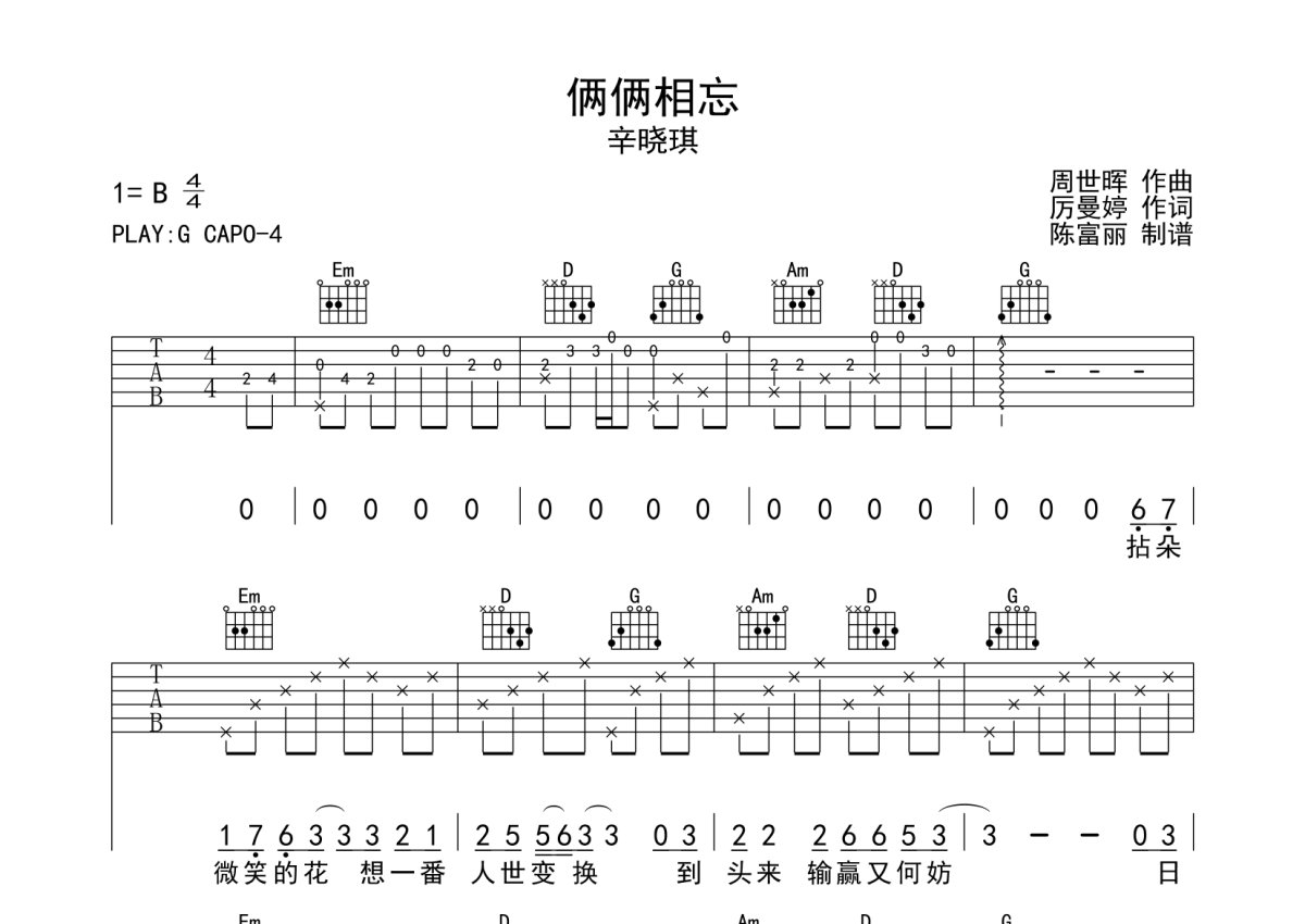 辛晓琪《俩俩相忘》吉他谱 - G调弹唱六线谱