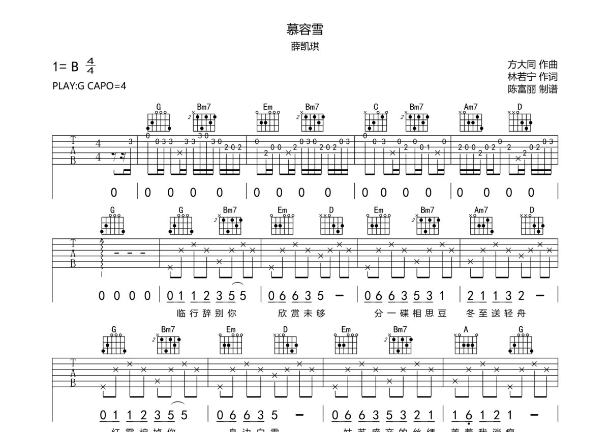 薛凯琪《慕容雪》吉他谱 - G调弹唱六线谱