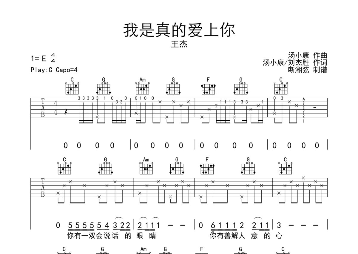 王杰《我是真的爱上你》吉他谱 - C调弹唱六线谱