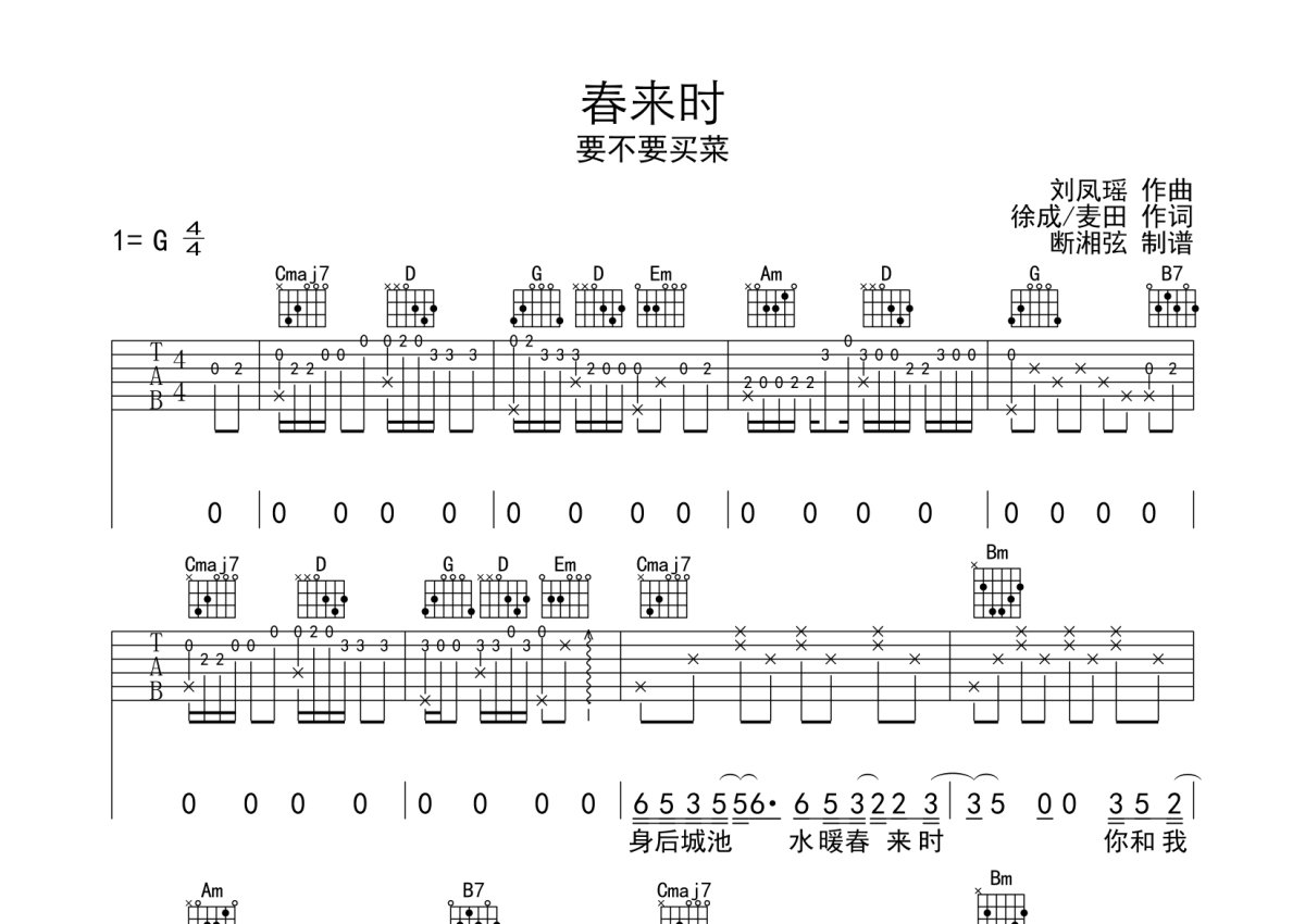 要不要买菜《春来时》吉他谱 - G调弹唱六线谱