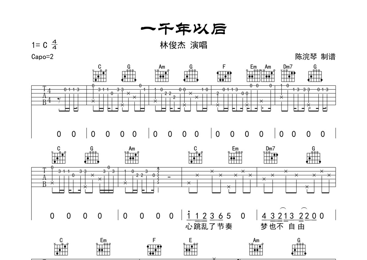 林俊杰《一千年以后》吉他谱 - C调弹唱六线谱