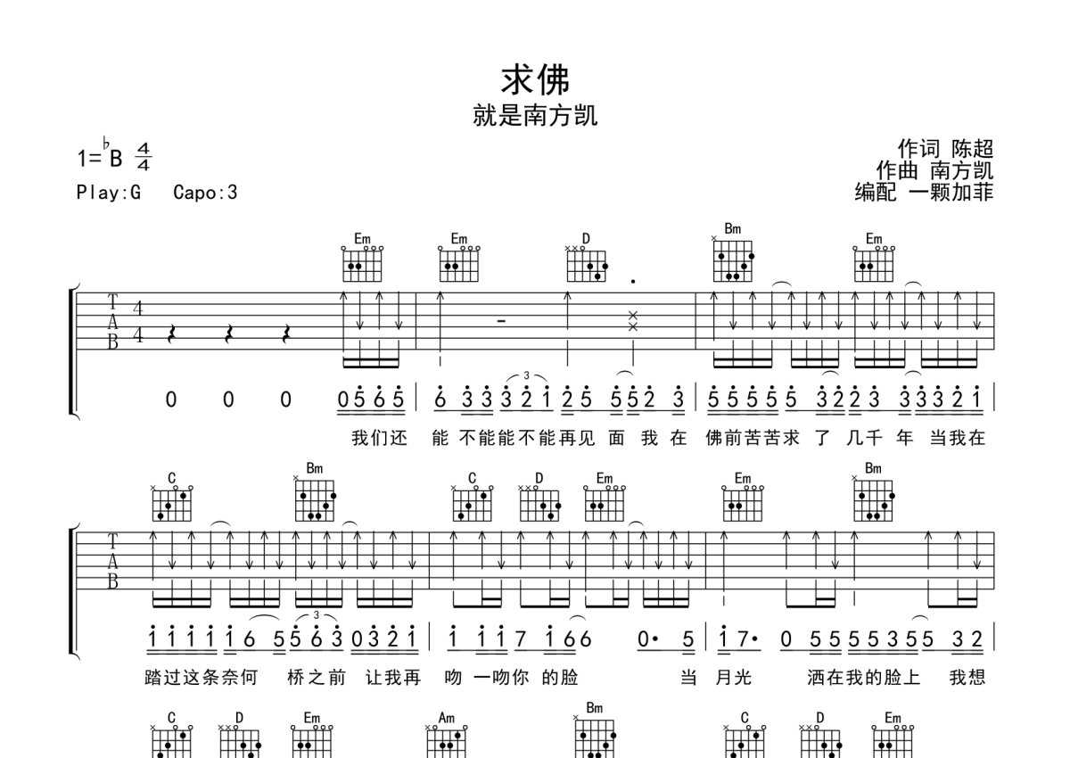 就是南方凯《求佛》吉他谱 - G调弹唱六线谱 - 简易入门弹唱版