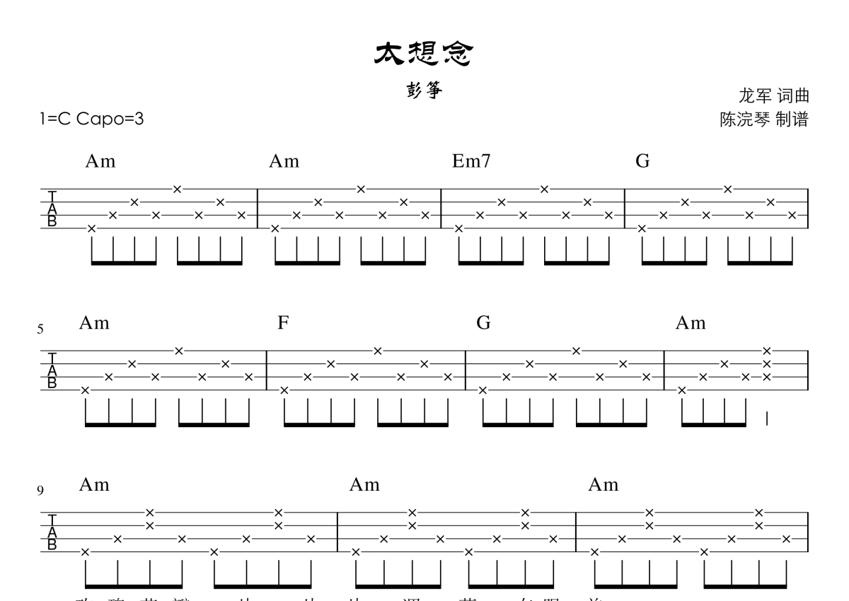彭筝《太想念》尤克里里谱 - C调尤克里里谱