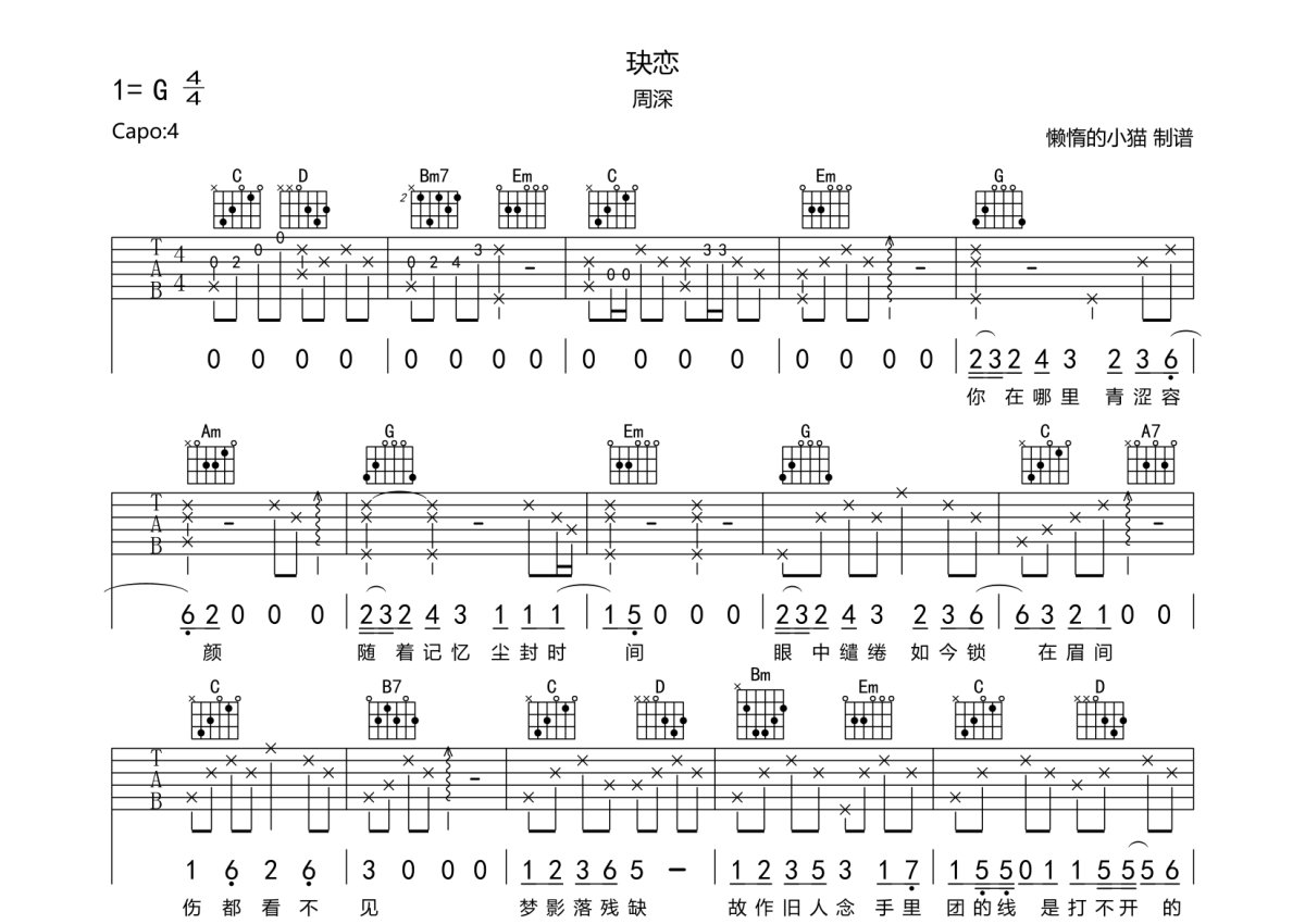 周深《玦恋》吉他谱 - G调弹唱六线谱