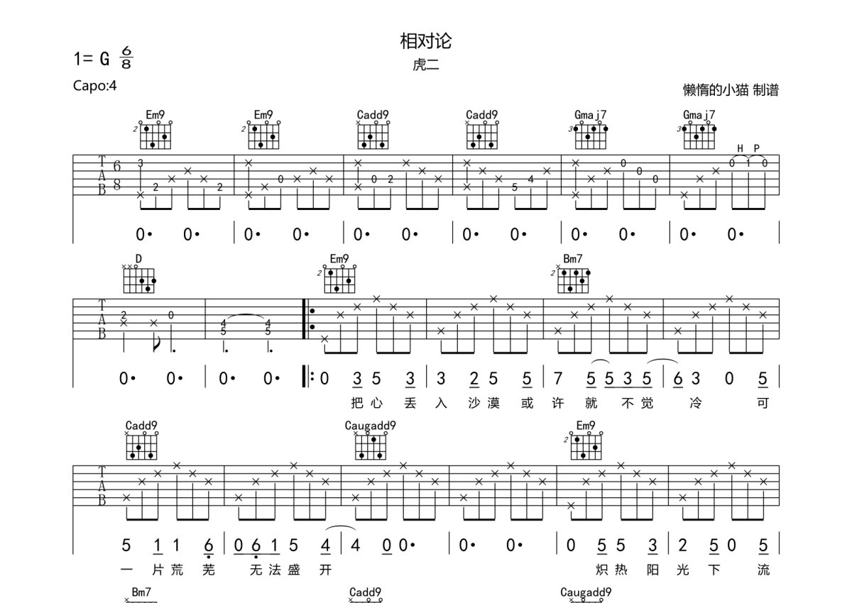 虎二《相对论》吉他谱 - G调弹唱六线谱