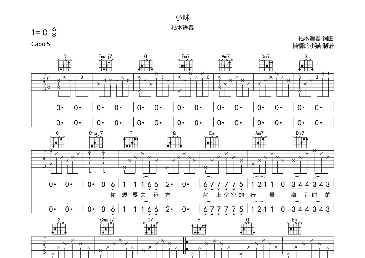 枯木逢春《小咪》吉他谱 - C调弹唱六线谱